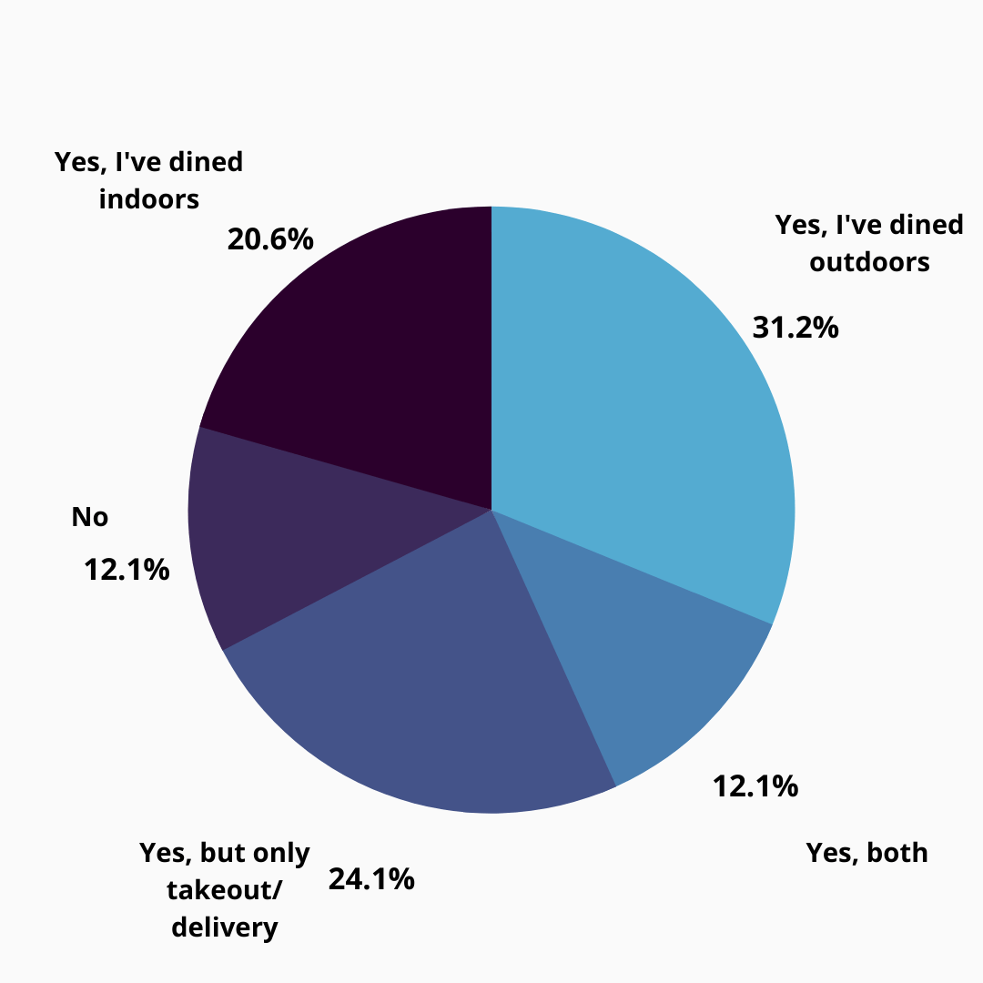 The latest results: While curfew restrictions were recently lifted for many businesses, the 11pm curfew remains in effect for restaurants and bars to minimize maskless activities. Meanwhile, NYC establishments open at 50 percent capacity, the maximum allowed for indoor dining, are finding diners don’t want to leave. Have you patronized a restaurant in the last month?