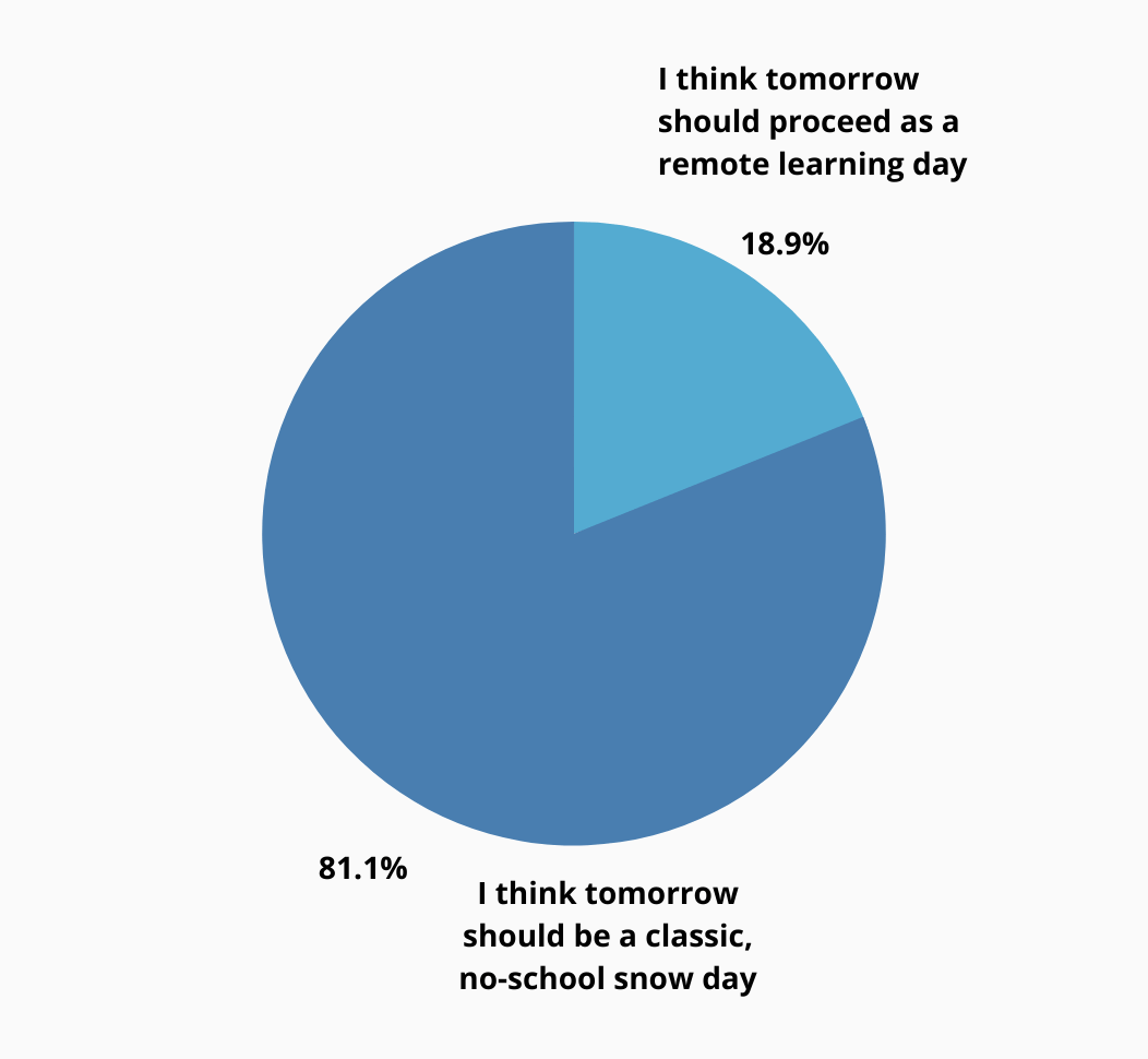 The latest results: With the impending snow storm, Mayor de Blasio said, because of remote learning, snow days are a “thing of the past” and tomorrow would go on as a day of virtual instruction for all students. What do you think schools should do tomorrow?