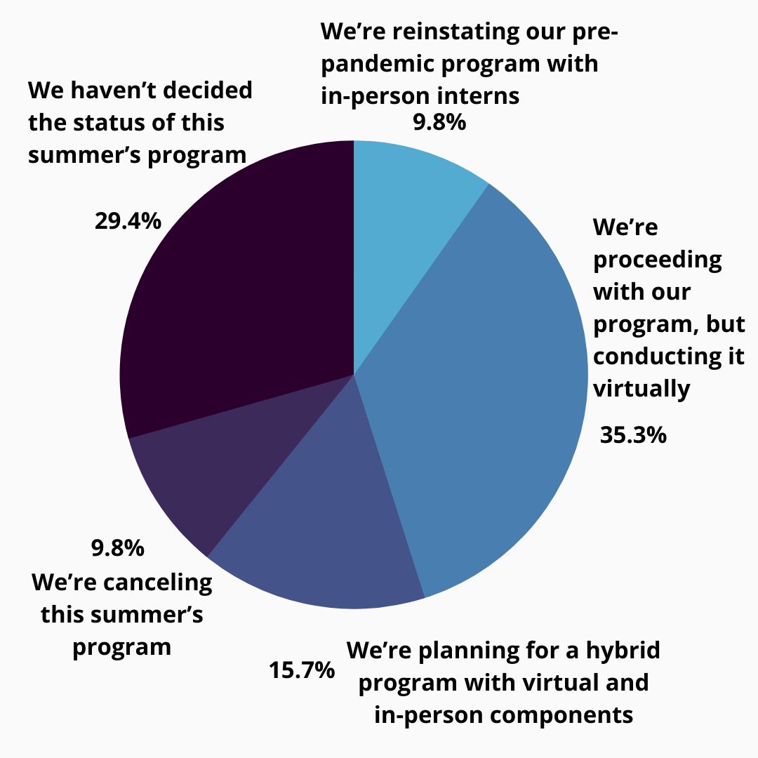 The latest results: The ongoing progress of the vaccine rollout is boosting confidence among employers that they’ll be able to bring workers back as early as this summer, and with that, many are hoping to also reinstate their summer internship programs. What are your company’s plans for its summer internship program?